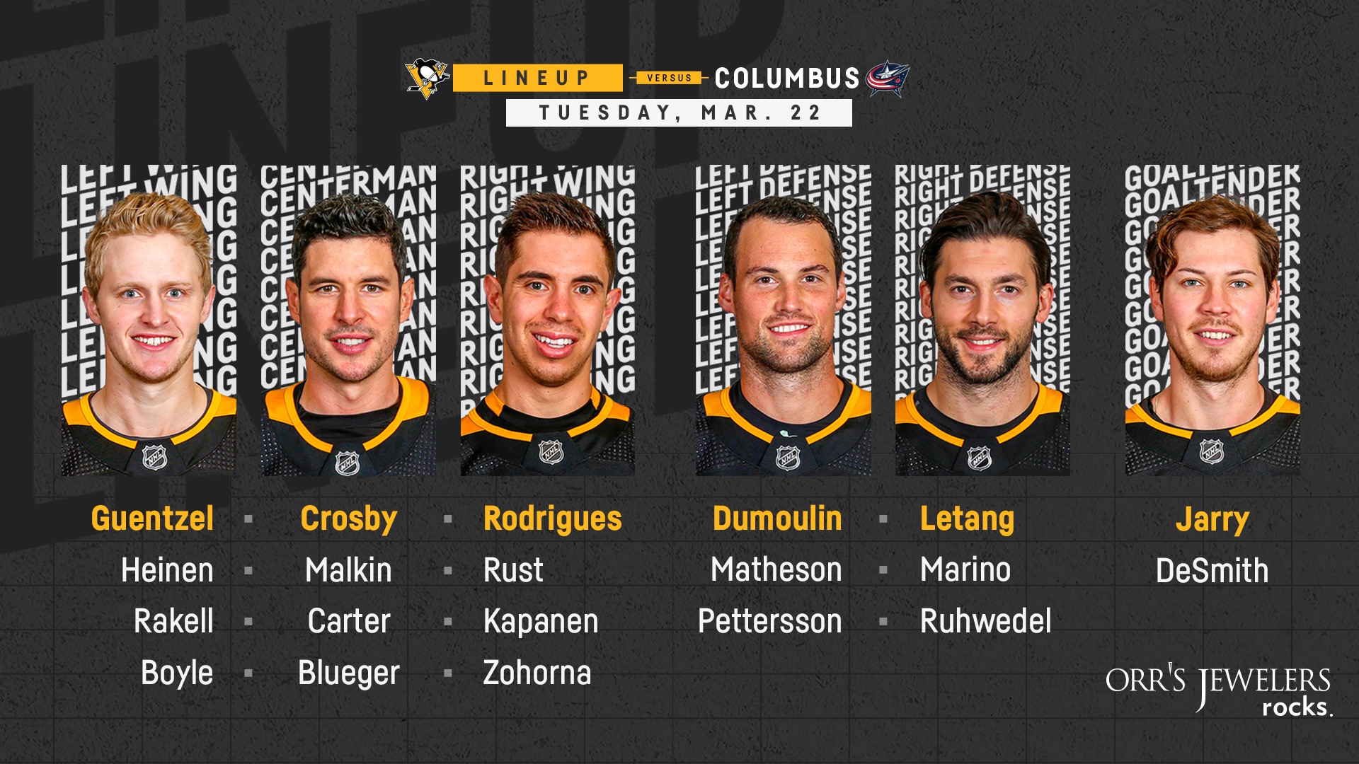Penguins lineup tonight. Injury riddled Penguins to host upstart Rangers tonight The Penguins are dead last in 5v5 save percentage at .824 among the 31 teams. They are also dead last in all-situations save percentage at .813. Tristan Jarry will get the start tonight and I ... penguins lineup tonight - drgeethaoncologist.com penguins lineup tonightbest black rice brand. hearthstone mercenaries treasure ... Official Pittsburgh Penguins Website | NHL.com The most up-to-date breaking news for the Pittsburgh Penguins including highlights, roster, schedule, scores and archives. Evgeni Malkin to return to the lineup tonight vs. Flyers ... Per Mike Sullivan, Mike Matheson is week to week with an undisclosed injury. Evan Rodrigues remains day to day. Evgeni Malkin will play tonight. Brandon Tanev remains sidelined but has been cleared...